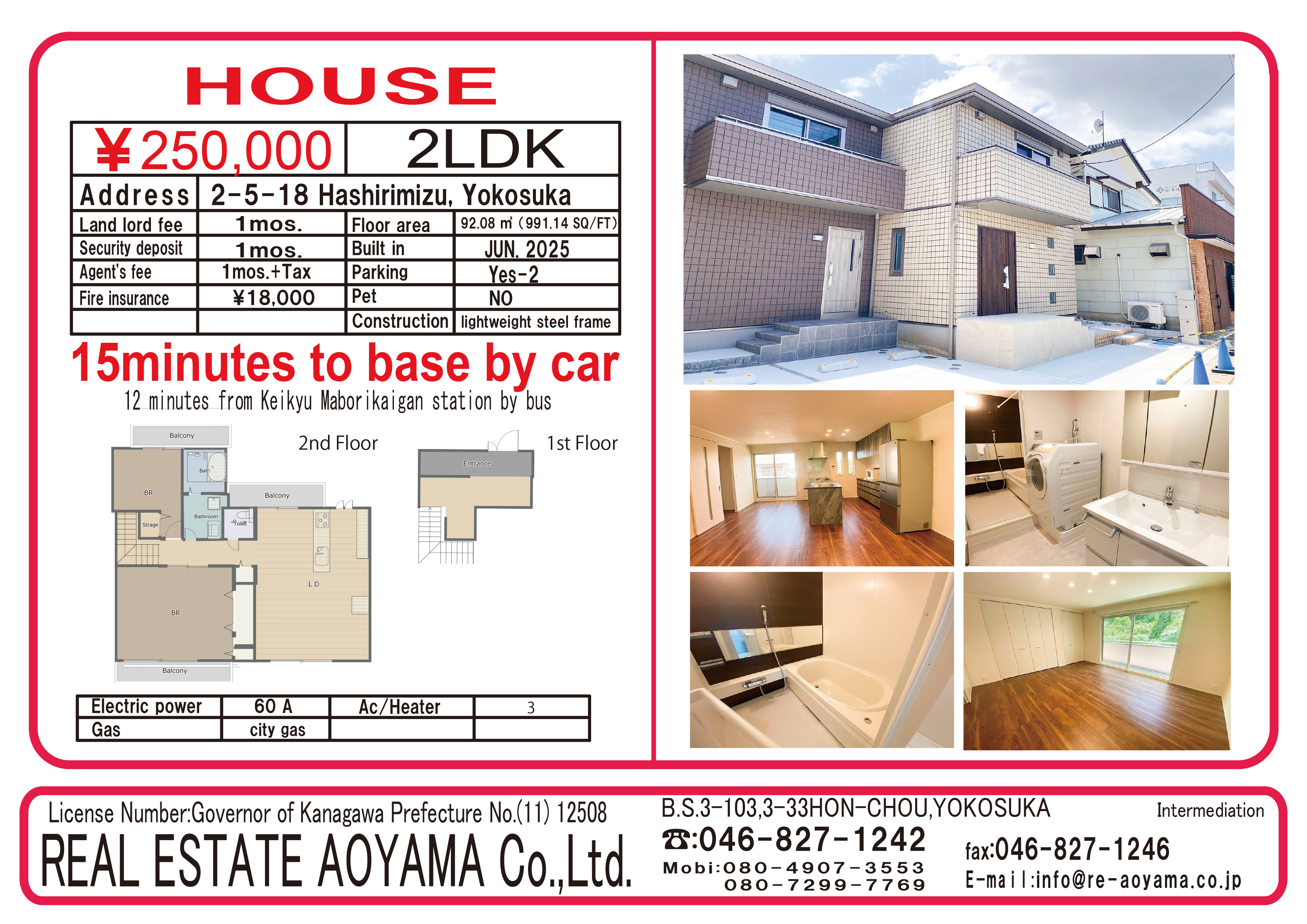Keikyu-Line Maborikaigan station Bus 12mins Hashirimizu Jinja bus stop | 2-15-8 Hashirimizu, Yokosuka | 92.08㎡ | 06/2025 | 250,000yen | 250,000 250,000 |